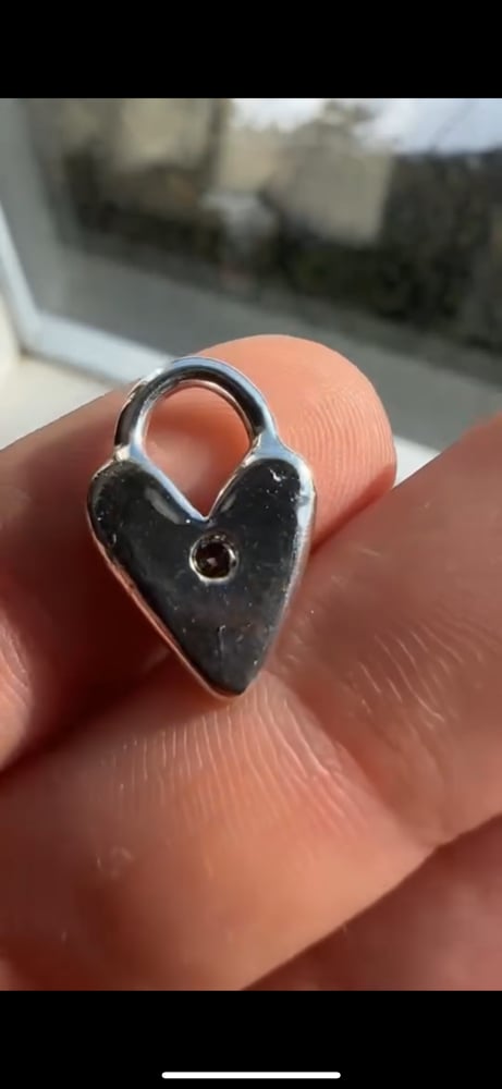 PREORDER for solid recycled sterling silver hearts featuring a 1.25-1.5mm champagne diamond. Only four available. Comes with 2 4.5mm sterling silver jumping.